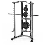 Integrated Weight Plate Storage: Accommodates a full Olympic weight plate set, keeping your gym organized and clutter-free.